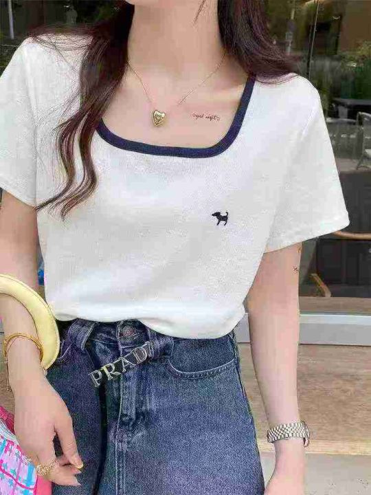 夏季捡漏全清:7.5一件品牌纯棉撞色刺绣圆领修身显瘦短袖T,[爱心]300件左...