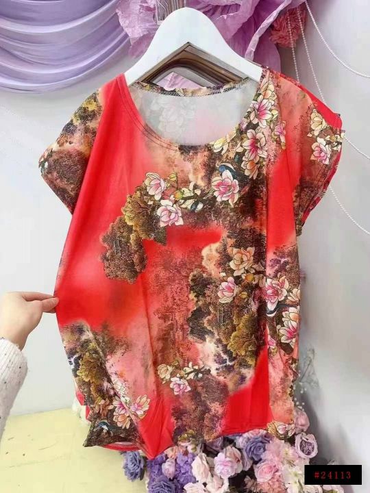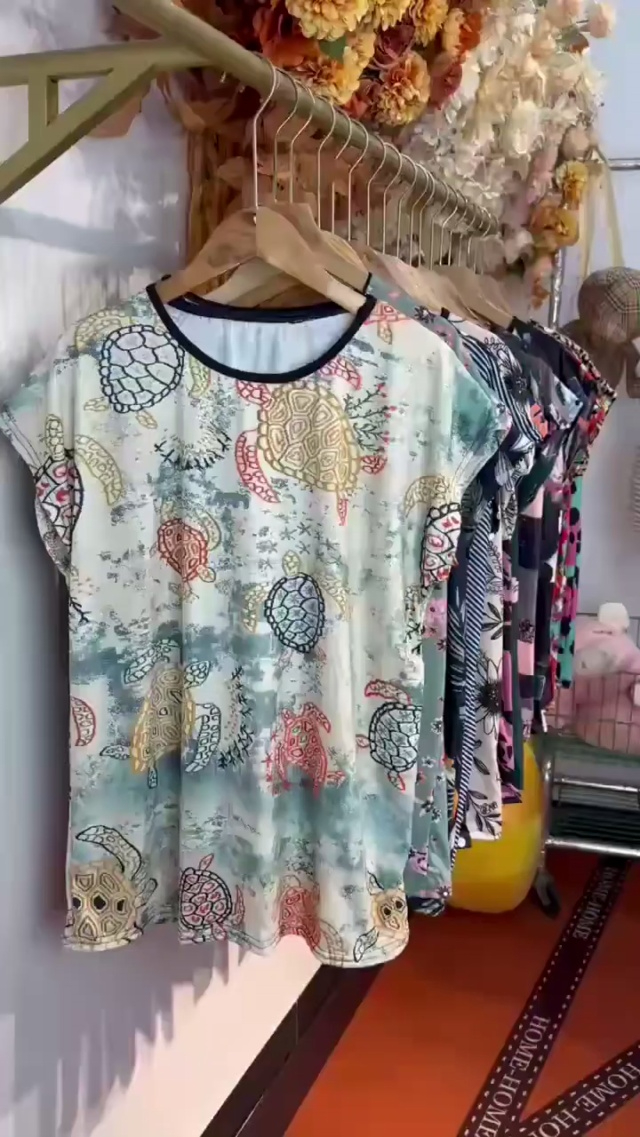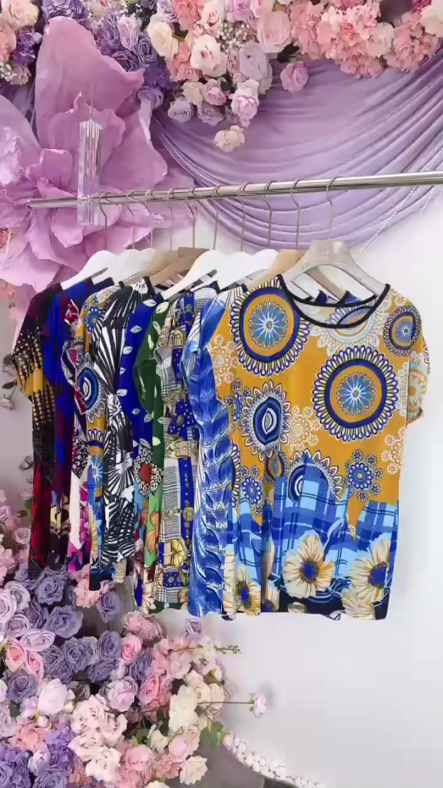上身短袖[太阳]全清价8.5、680件、均码。 中老年妈妈装洋气宽松花短袖,...