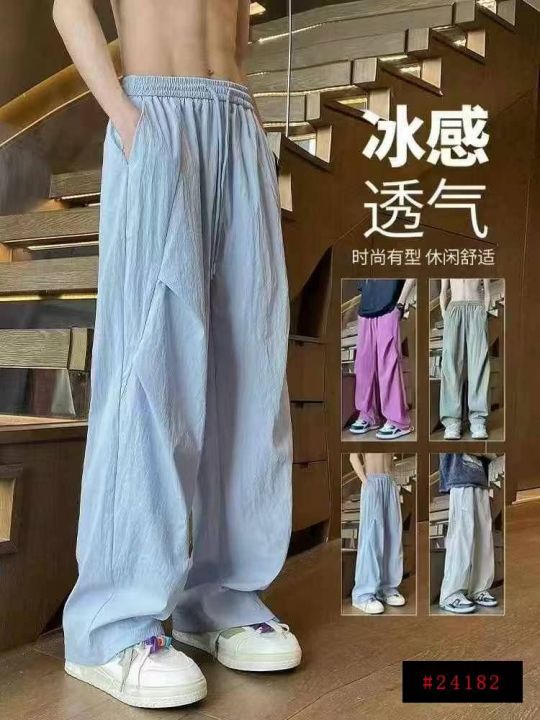 10.8清221条运动裤男夏季冰丝四面谈 宽松商务休闲长裤速干直筒黑色垂感裤子...