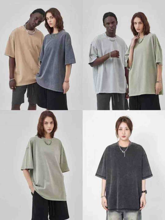 ☕️男女同款大版洗旧工艺纯色短袖T恤,319件全清6.8元,分货7.8元,码数M-...