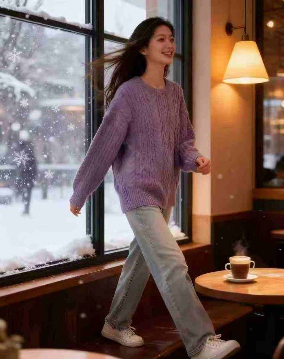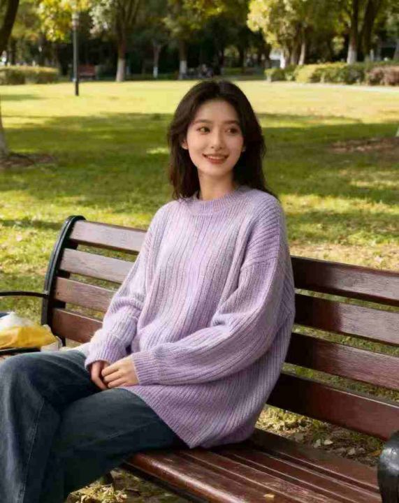 全清10.8 韩系温柔软糯紫色麻花毛衣女秋冬高级感慵懒风宽松圆领套...