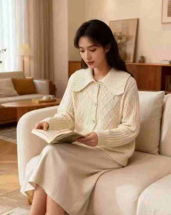 2025年冬装娃娃领小香风设计感小众奶fufu软糯针织开衫毛衣外套女...