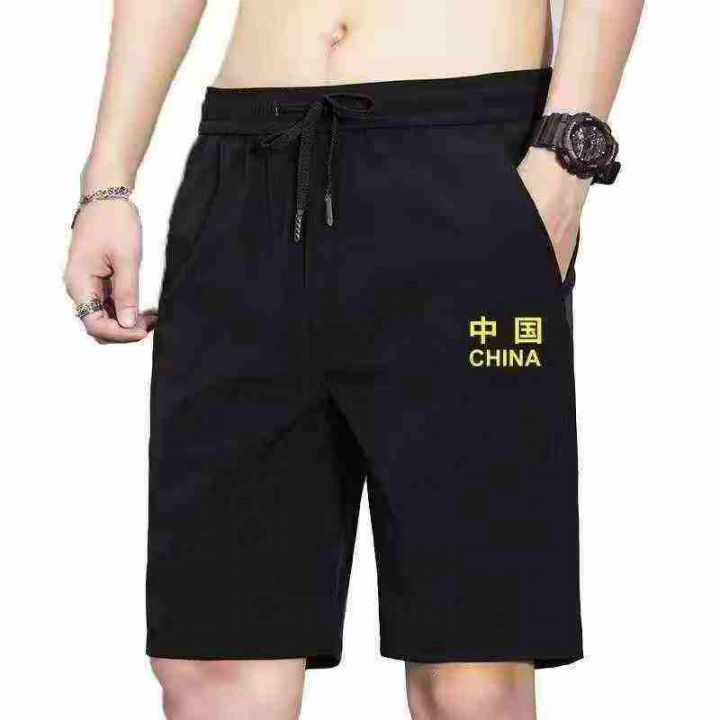 新款中国标印花男士休闲运动健身短裤潮流流行休闲五分裤,独立包装,均码,...