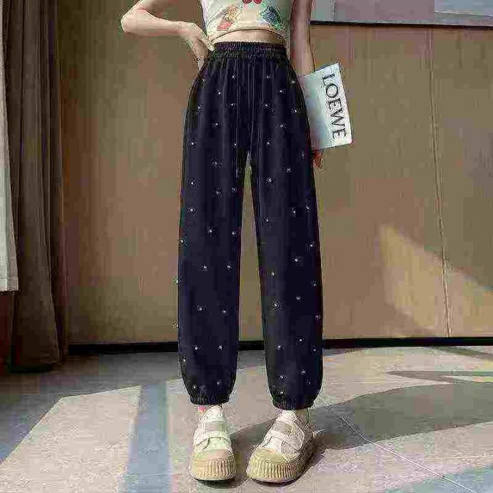 韩系重工镶钻满天星加绒束脚卫裤760件,秋冬清仓9.9,分货11.8,华棉面料柔...