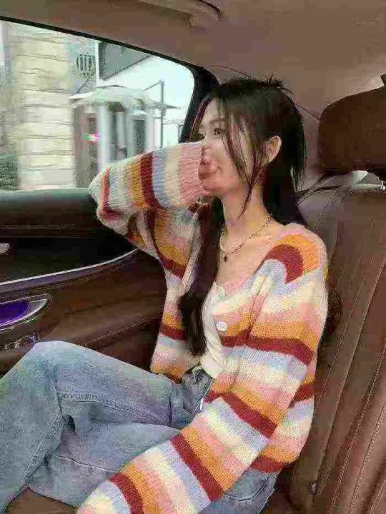 2025秋冬新款潮毛衣女显瘦休闲彩条针织外套开衫,独立包装,均码,418件,...