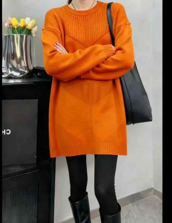 秋冬新款宽松慵懒风中长款那麻花设计款轻熟女装圆领套头毛衣,独立包装,均...
