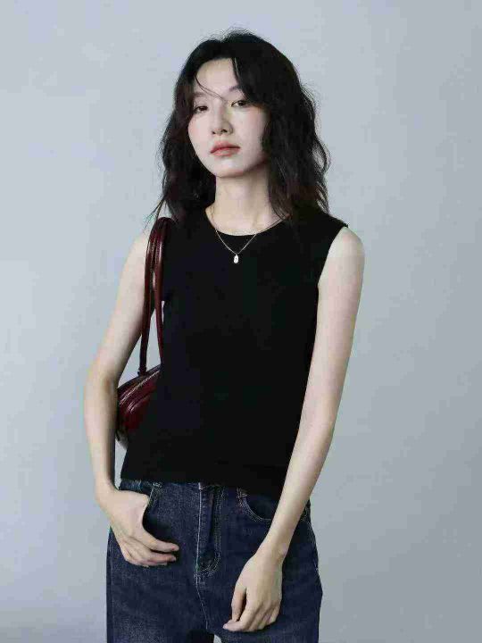 ️全清2.9 气质名媛夏季内搭蕾丝花边修身缎面背心,纯色设计感时尚背心,...