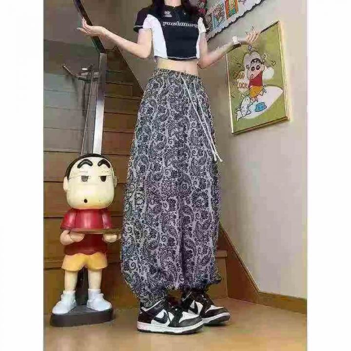 194条,腰果花满印冰丝裤子男女夏季薄款oversize阔腿灯笼裤束脚,独立包装...