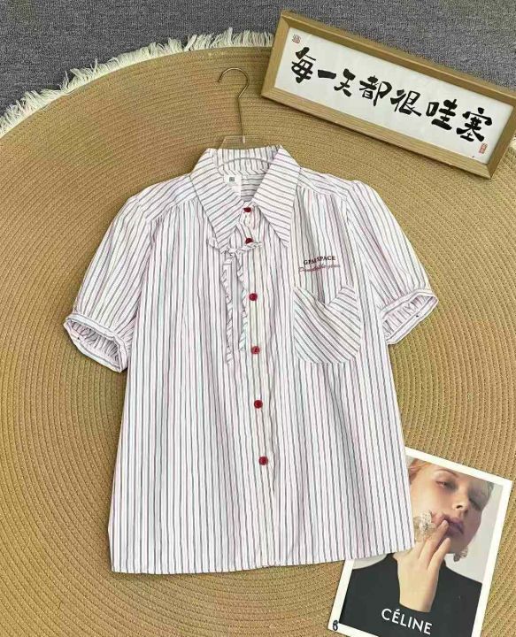 韩系学院风短袖衬衫101件7.9,Polo领,泡泡袖,后领包边,蝴蝶结装饰,有口...