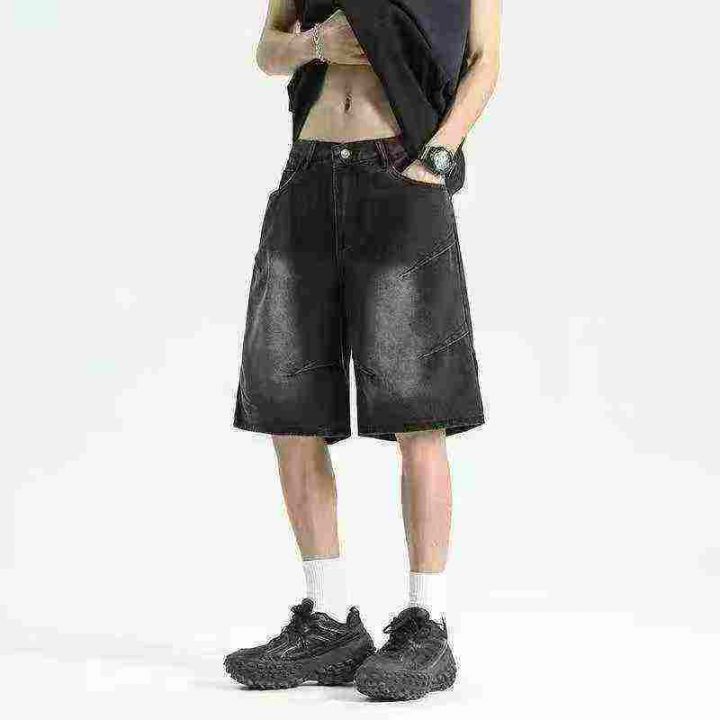 全清9.8分货+1跨境美式复古水洗牛仔短裤男士宽松百搭直筒裤子夏季新款中裤...