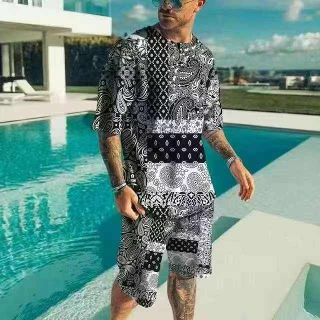 [啤酒]跨境2025爆款男装T恤短袖套装休闲时尚男士运动装(小整杂),独立包...