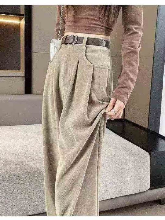 春秋新款宽松百搭网红复古美拉德高腰垂感直筒休闲阔腿裤,独立包装,码数M-...