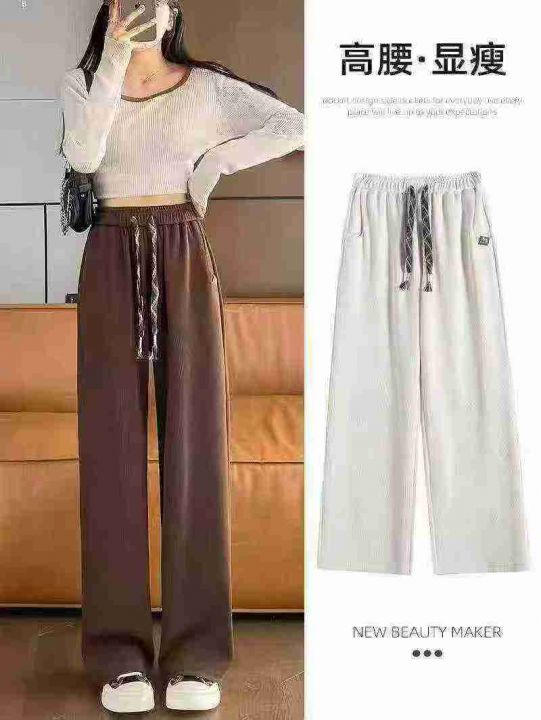 ☕️大码胖mm高品质休闲阔腿裤女秋季新款抽绳松紧高腰垂感显瘦直筒裤150条...