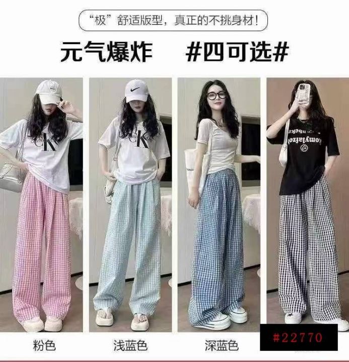 下身阔腿长裤[太阳]全清8.5,3200件,均码,理想格子阔腿裤女夏薄款慵懒松...