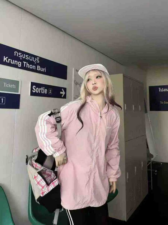 9.9清天猫仓回收194件粉色元气宽松轻薄连帽防晒衣外套,码数S-L。版型质量...