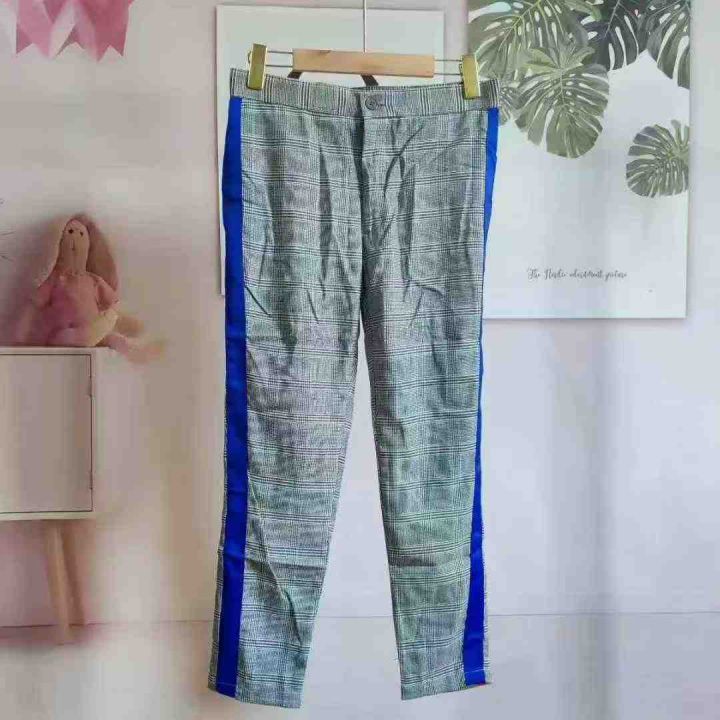 4.5元秒杀[庆祝][庆祝] 英伦格子拼色梭织休闲女装裤,独立包装,码数XS-L...