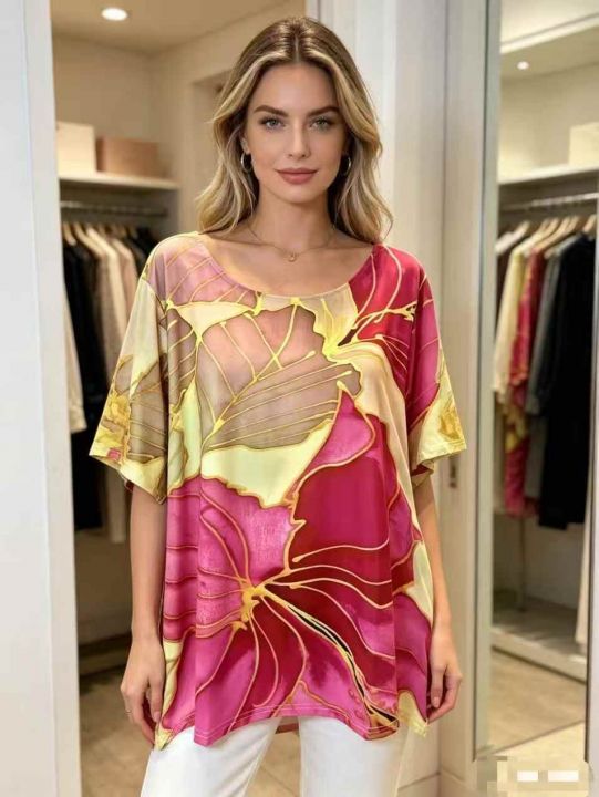 ✅4153pcs数量;跨境欧美爆款琉璃光印大码宽松显瘦上衣T恤,图案款式新颖多...