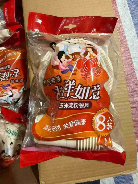环保天然材质的一次性餐具套装,可放微波炉可冷藏,一箱20包一包8套餐具,4...