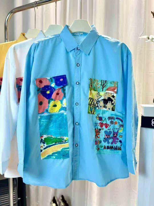 风油画可爱别致花朵小众设计感工装款长袖衬衫上衣 独立包装 码数1-4码 数量...