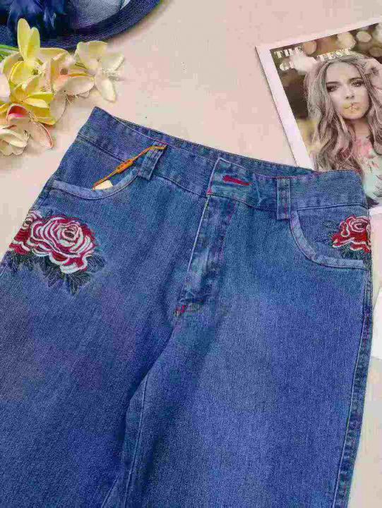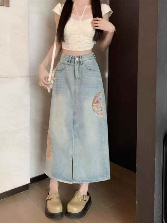 全清10.8 不分货 新款蓝色国风女大码中长款开叉刺绣牛仔裙 数量80件左右...