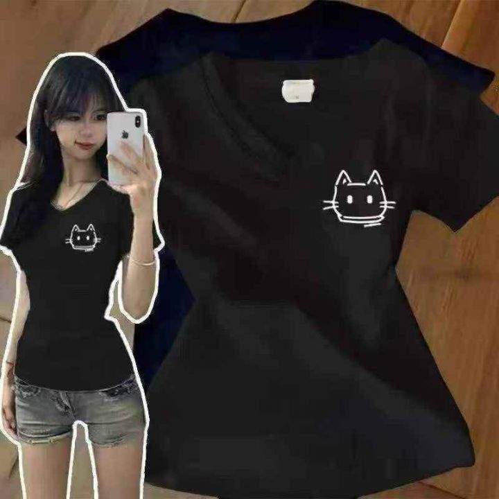 [月亮]:5.8清145件(不分货)[月亮]:夏季正肩V领猫咪印花短袖T恤[月亮]:...