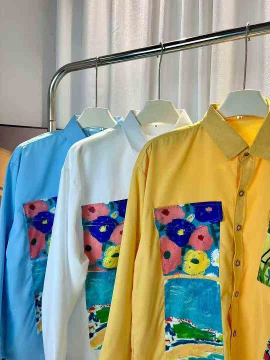 风油画可爱别致花朵小众设计感工装款长袖衬衫上衣 独立包装 码数1-4码 数量...