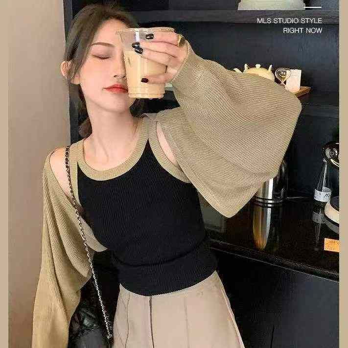 春夏季新款韩系纯欲辣妹长袖针织蝙蝠罩衫,独立包装,均码面料柔软有弹力,...