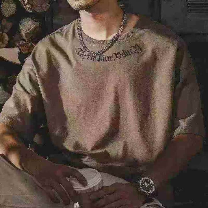 全清6.9夏季潮牌字母刺绣短袖t恤男ins胖子宽松大码圆领半袖T恤 1098 件 码...