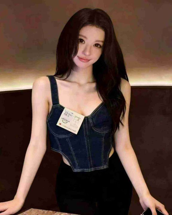 美式复古牛仔吊带抹胸个性辣妹修身显瘦上衣490件全清8.8元 分货9.8元,码数...