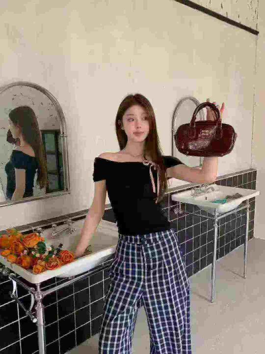 甜欲棉质辣妹一字领上衣599件7.8面料柔软有弹力,绑带蝴蝶结,褶皱设计,码...
