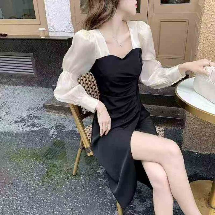 ① 法式设计感泡泡袖轻奢御姐风连衣长裙!独立包装,整款两色,码数S-2XL,...