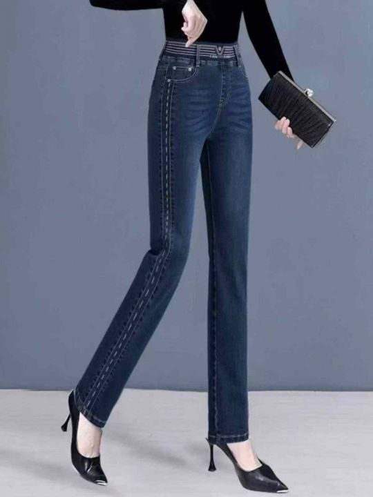 春季新款高腰高弹力松紧腰中熟宽松百搭牛仔裤,独立包装带吊牌,码数26--32...