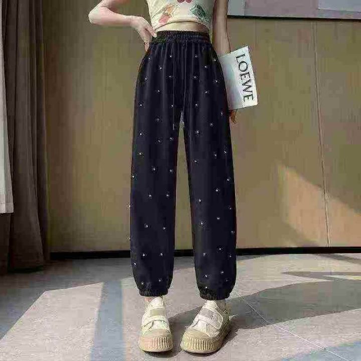 韩系重工镶钻满天星加绒束脚卫裤580件,秋冬清仓9.9,分货11.8,华棉面料柔...