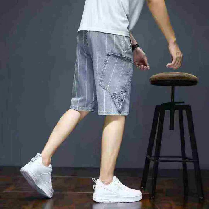 弹力条纹短裤男生外穿夏季薄款休闲中裤网红潮流百搭五分牛仔裤300件,图片...