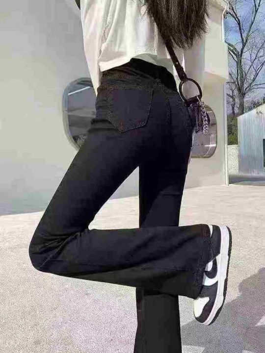 黑色弹力微喇牛仔裤春季新款高腰显瘦喇叭裤修身拖地马蹄裤子150件,独立包...