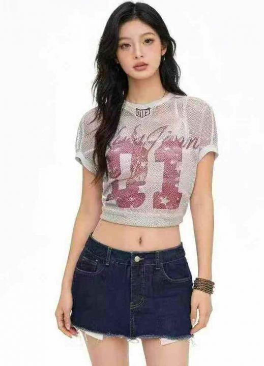 清货3.8元,分货4.8元印花斜肩短袖T恤女夏季设计感露肩美式辣妹独特上衣,...