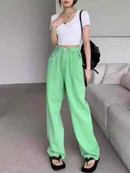 春夏季新款网红复古可调节洗水棉彩色直筒阔腿牛仔裤,独立包装带腰卡带防伪...