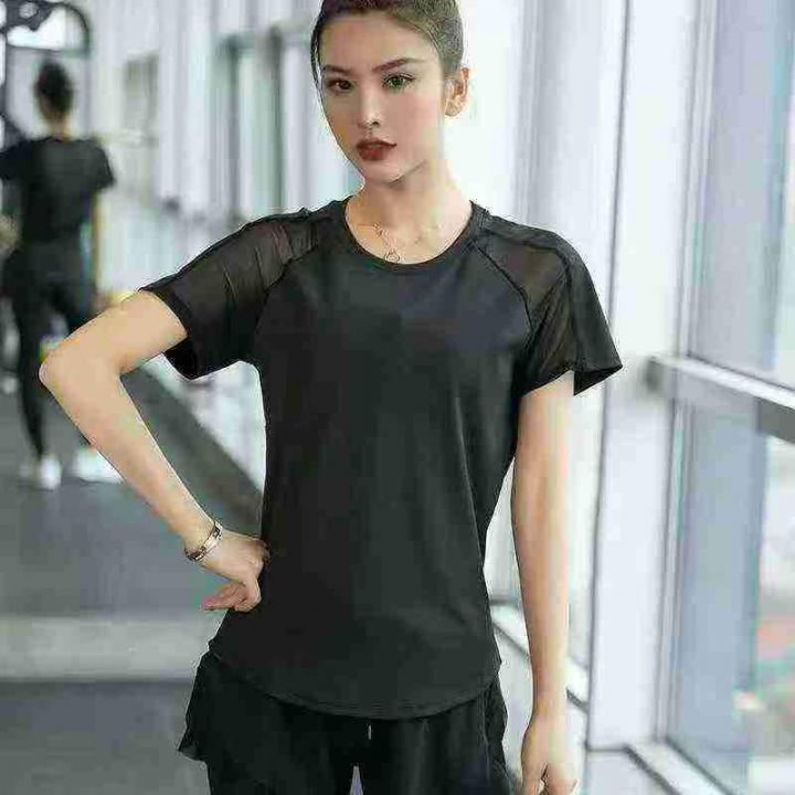 1400件运动健身拼结网纱速干瑜珈短袖。面料柔软舒适,高弹力,品质好。S 一...
