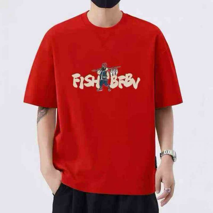☕️红色220克纯棉短袖t恤男女夏季宽松显瘦潮牌美式ins潮流印花高级感上衣1...