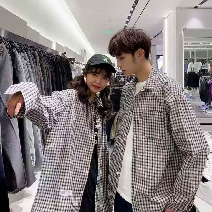 新款长袖衬衫男女时尚潮流百搭撞色格子衬衫上衣服男外套,图片2个款,M-3XL...