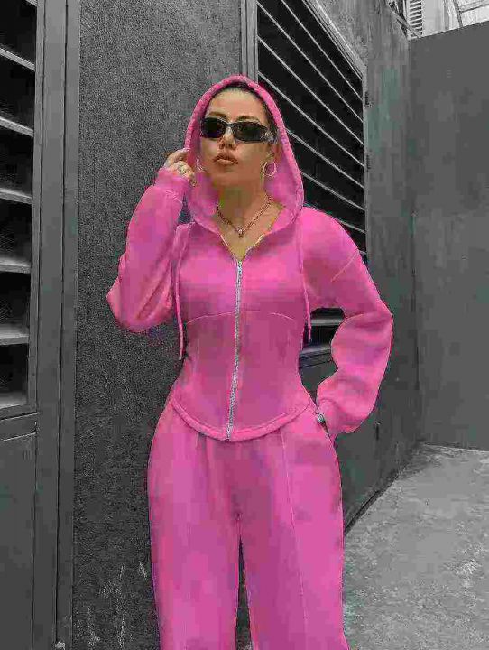 11.5清欧美跨境潮流摇粒绒短款连帽开衫+长裤休闲两件套,整款三色,数量100...