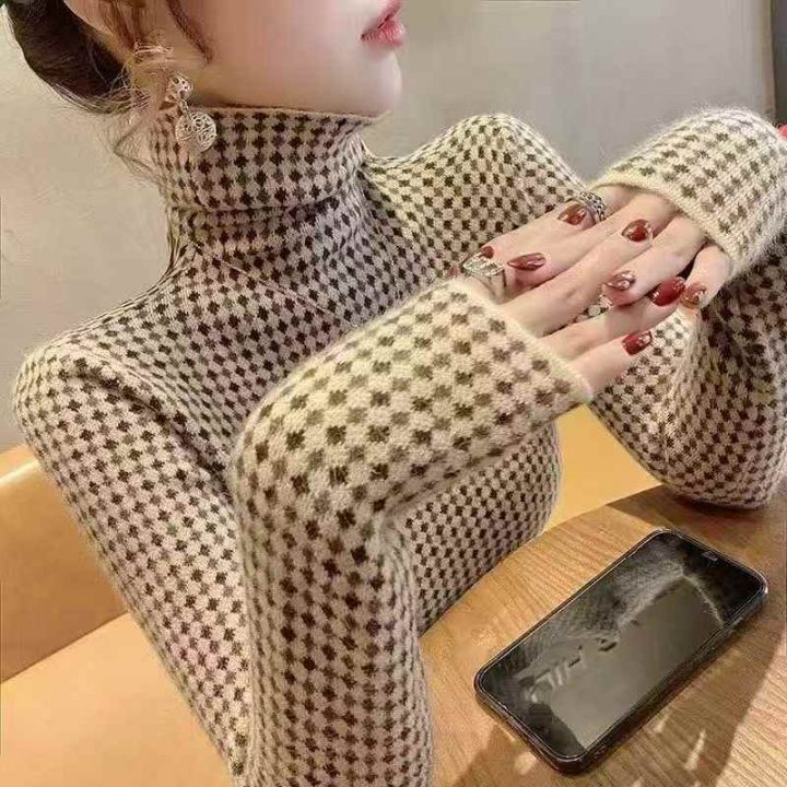 品牌原单冬季千鸟格加厚款包芯纱高领套头毛衣,独立包装带吊牌,均码面料软...