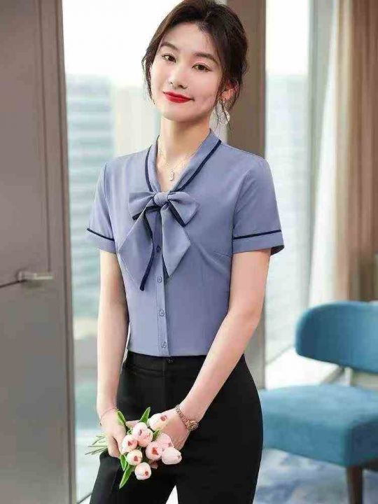 夏季款职业装雪纺衬衫女时尚洋气气质韩版垂感短袖衬衣,独立包装,S一3 xL...