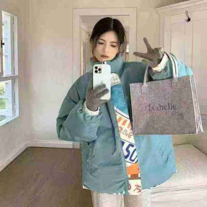 300左右\'两面穿涂鸦立领棉衣女冬季潮流chic加厚棉袄百保暖情侣面包服外套...