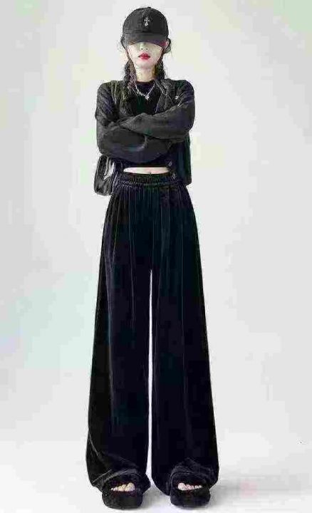 全清价7.9元金丝绒秋冬新款垂坠感高腰显瘦百搭宽松高腰休闲开叉阔腿裤,独...