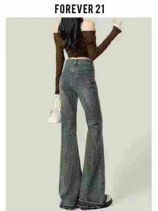 设计感复古做旧洗水棉微喇叭牛仔裤女高腰修身美式裤子,数量140条,单款单...