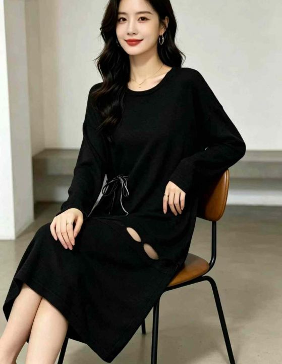 春秋新款品牌原单复古微胖MM宽松设计款毛衣连衣裙,独立包装带吊牌,2款多...
