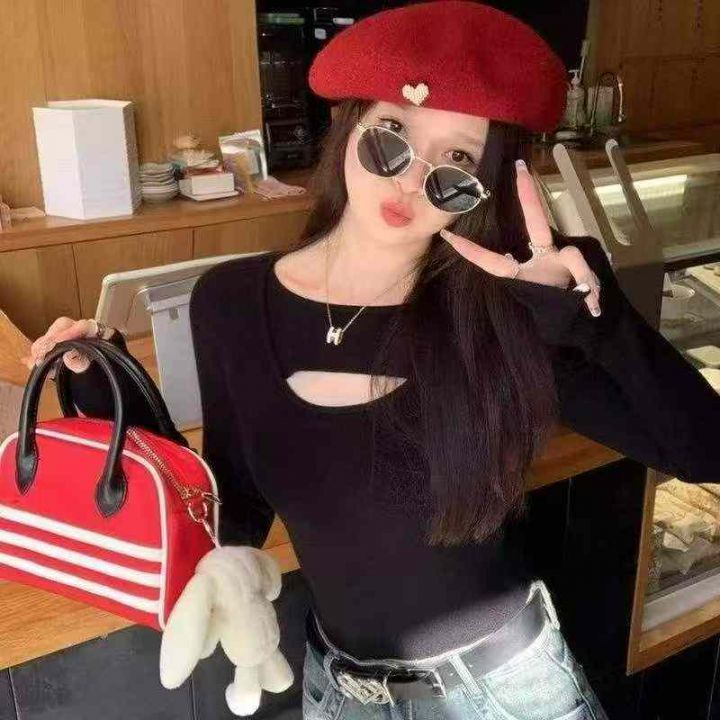 秋冬新款撞色高腰设计不规则纯欲风短款针织套头毛衣,独立包装,均码面料柔...