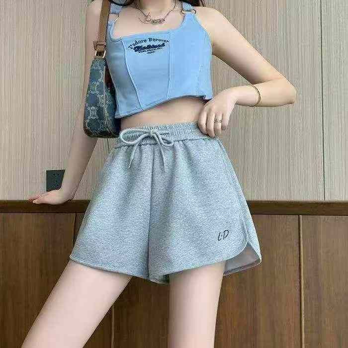 夏季新品休闲时尚百搭宽松显瘦抽绳高腰运动棉短裤,独立包装,码数M--2XL码...