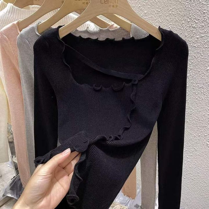 秋冬新款网红爆款方领木耳边开叉针织套头毛衣,独立包装,均码面料柔软舒适...